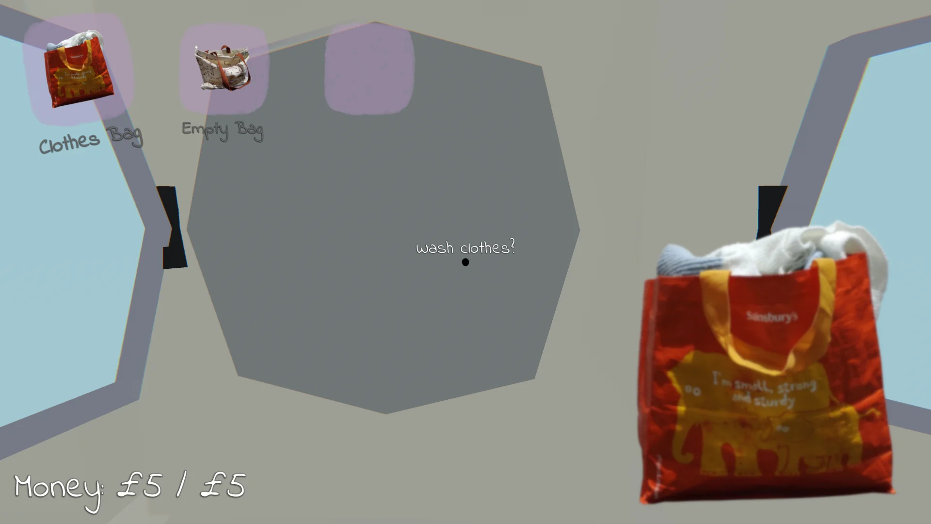 Lazy Launderette is a small and simple game about searching a launderette for loose change in an attempt to gather enough money to pay to use a washing machine.